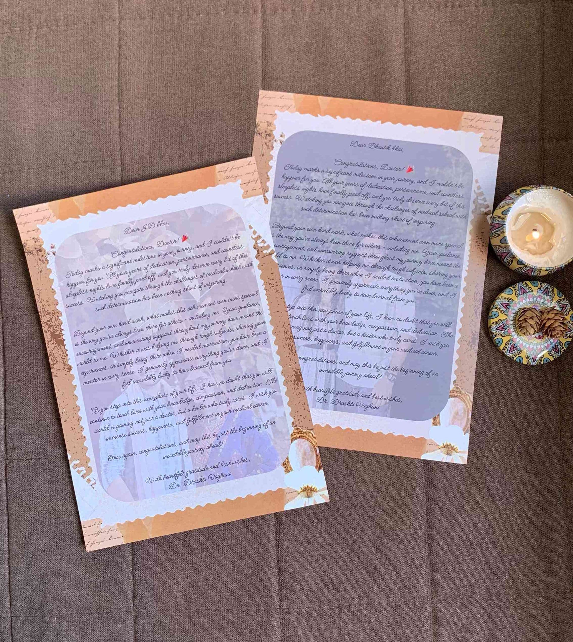 Add a touch of nostalgia to your next celebration with our Timeless Vintage Personalized Letter. Printed on premium paper with your custom photo in the background and handwritten-style text layered on top, this handcrafted keepsake captures heartfelt sentiments like no other. Each letter is rolled and tied with a satin ribbon, creating a delightful unboxing experience for birthdays, weddings, graduations, anniversaries, or any special occasion. Embrace the charm of old-world stationery and give a unique, personalized gift that leaves a lasting impression. Order your Timeless Vintage Personalized Letter today and turn treasured moments into an heirloom-worthy memory!